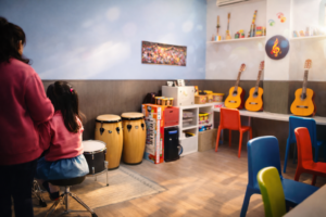 Los más pequeños descubren la música de manera natural, explorando y experimentando con distintos instrumentos.